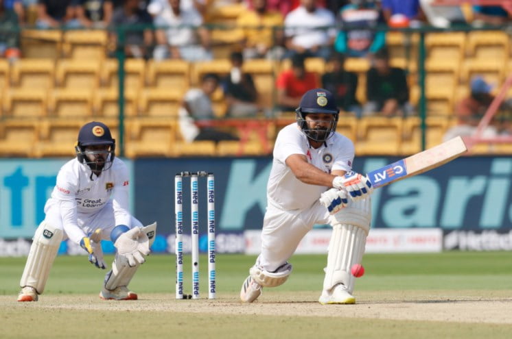 India is again getting the better of Sri Lanka in the ongoing final Test of the two-match series at the M Chinnaswamy stadium Bengaluru. Earlier the hosts clean-swept the Lankans in the three-match T20I series 3-0, and now, they are on the cusp of completing a 2-0 sweep in the Test series. In the day-night affair, the Indian skipper, Rohit Sharma entertained the fans inside the stadiums, as well as the others across the world, by playing reverse scoop, not once but twice.
