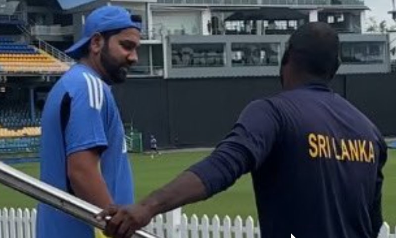 India captain Rohit Sharma landed in Sri Lanka on July 28 for the upcoming three-match ODI series against the host nation. Upon arrival at the R Premadasa Stadium in Colombo, Rohit was seen engaging in a warm conversation with former Sri Lanka captain and all-rounder Angelo Mathews. The two veteran cricketers shared a handshake and a hug, reflecting their mutual respect and camaraderie built over years of competition.