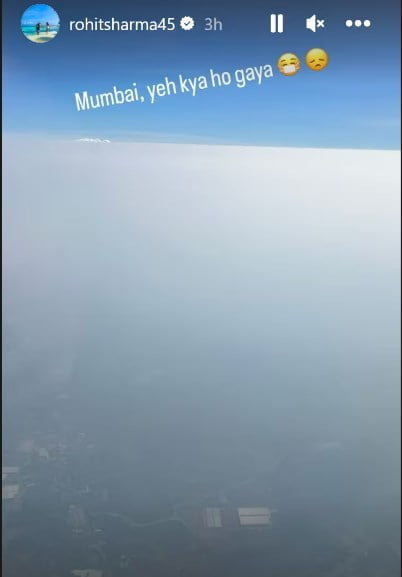 India captain Rohit Sharma has raised concerns about the poor air quality in Mumbai, which is a matter of worry for cricketers playing in the ongoing World Cup 2023. In a recent Instagram story, Sharma shared an aerial view of Mumbai from his flight, showing a thick smog covering the city. “Mumbai, yeh kya ho gaya (Mumbai, what’s happened)?” he captioned the photo with a mask-wearing emoji.