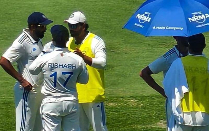 Rohit Sharma is out in the high vis, not quite delivering drinks or holding up the umbrella but having a chat with Jasprit Bumrah #AusvInd pic.twitter.com/cge7Lpl1Dx