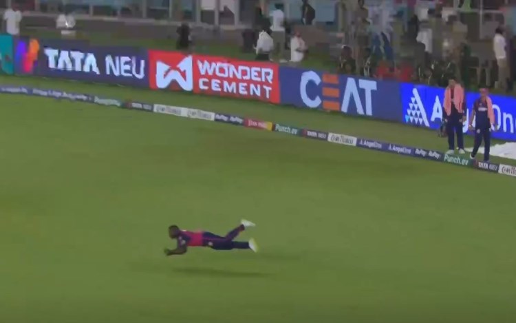 The high-pressure Eliminator between Rajasthan Royals and Royal Challengers Bangalore witnessed a sensational catch by West Indies all-rounder Rovman Powell. In the powerplay, Powell displayed exceptional anticipation and athleticism, diving forward to pouch the crucial wicket of RCB captain Faf du Plessis in the deep mid-wicket region.