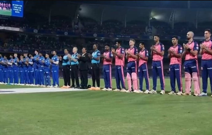 Just moments before the start of play between the RR and MI, the players of both sides offered their respects to the late spin legend. The Melbourne cricketer’s picture was also displayed on the giant screen. Apart from the cricketers, the match officials also stood in silence and paid tribute to the champion bowler.