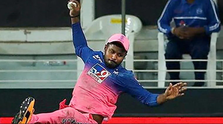 Sanju Samson took the catch on the last ball of the 18th over bowled by Tom Curran to end the 34-run partnership between the Australia pacer and Eoin Morgan. And in the process, he nearly suffered a nasty head injury as his head banged the ground hard while taking the catch.