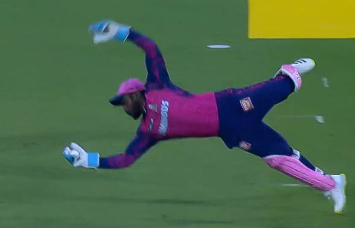 Rajasthan Royals (RR) skipper, Sanju Samson is one of the best wicket-keepers in Indian cricket and he proved it by taking an exceptional catch in the game against Delhi Capitals at the Barsapara Cricket Stadium, Guwahati on Sunday. To send back the DC opener, Prithvi Shaw, Sanju divided to his right and took a stunning catch in the air.