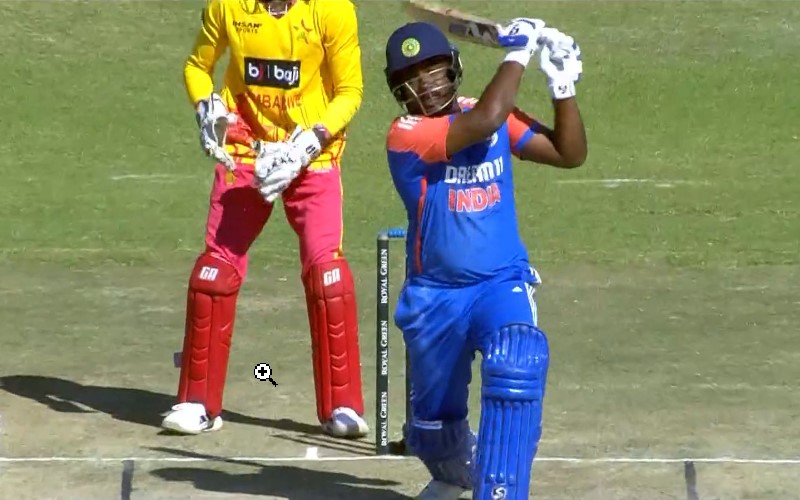 Fans of Sanju Samson were overjoyed on Sunday, July 14, as their star player finally got a chance to showcase his batting prowess in the fifth and final T20I against Zimbabwe. Samson delivered a spectacular performance, including a massive 110-meter six straight down the ground, which sent the ball soaring over the roof of the stadium and out of the park. This impressive shot highlighted his immense talent and thrilled the audience.