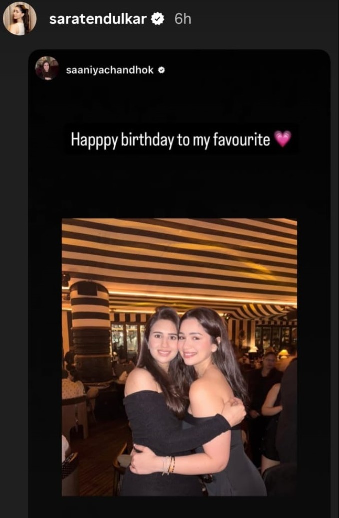 In a few photos, Sara Tendulkar was seen posing alongside her close friend, Saaniya Chandhok, who is also her brother Arjun Tendulkar’s fiancée. Saaniya, who got engaged to Arjun Tendulkar in August this year, also took to her Instagram stories to post a heartfelt birthday message for Sara.
