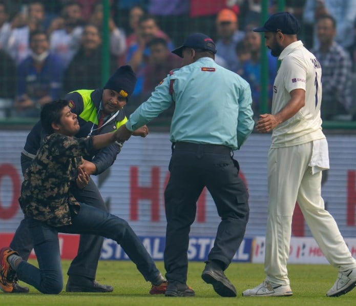Rushing onto the field by spectators and fans was fairly common. During the ongoing game in Delhi, one Indian fan interrupted a game before being tackled and slapped by security guards. However, Mohammed Shami intruded and ask the security people not to beat the fan.