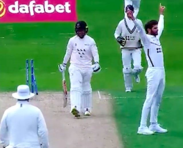 Pakistan fast bowler, Shaheen Afridi continued his excellent wicket-taking form in the ongoing County Championship Division Two game between Sussex and Middlesex. The southpaw pacer took the new ball for his side and he has been among the wickets ever since he made his debut in the tournament. In the ninth over of the innings, Afridi bowled a peach of a delivery to remove Sussex skipper Tom Haines.