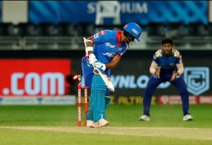 Delhi Capitals (DC) got off to a nightmarish start while chasing a huge target of 201 runs in the ongoing first Qualifier against teh defending champions Mumbai Indians (MI) at the Dubai International Cricket Stadium, on Thursday. Mumbai’s pace bowlers – Trent Boult and Jasprit Bumrah – wreaked havoc by scalping four wickets in as many overs including teh likes of, Shikhar Dhawan, Ajinkya Rahane, and Shreyas Iyer.