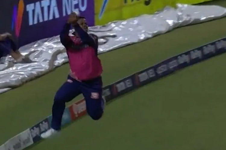 Gurbaz was in full flow and wanted to smash Boult off the first ball, over the mid-off region. He hit from the middle part of the bat but could not get the elevation. Sandeep ran some yards quickly and then dived to his right to take a brilliant catch.