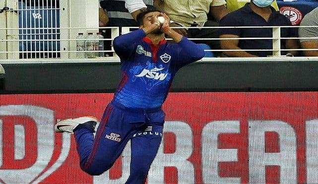 Shreyas Iyer was electrifying on the field especially in the 14th and 15th over of the chase. On the third ball of the 14th over, Iyer completed a brilliant catch at long-on. When he was about to fall across the rope, Shreyas Iyer popped the ball in the air in time and got beyond the boundary only to come back finish the catch cleanly in the end.