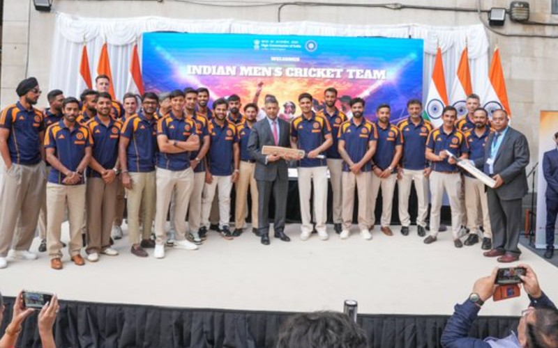 Captain Shubman Gill and head coach Gautam Gambhir presented signed bats to High Commissioner Vikram Doraiswami and Deputy High Commissioner Sujit Ghosh as a token of appreciation. The brief but meaningful ceremony concluded with players posing for photographs alongside the dignitaries.