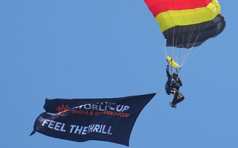 Sri Lanka marked a memorable start to its role as a co-host of the ICC Men’s T20 World Cup 2026 with a dramatic trophy unveiling at the R. Premadasa International Stadium in Colombo. In a spectacle that immediately captured global attention, professional skydivers descended from the sky carrying the iconic ICC T20 World Cup trophy, moments before the first ODI between Sri Lanka and England.