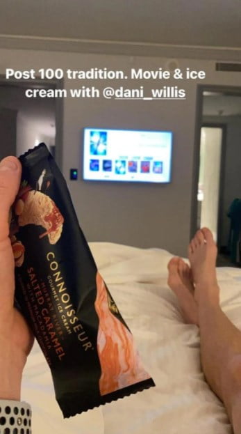 Steve Smith was a delighted man after getting back into runs and his latest social media post was the testimony to the same one of his ‘post 100 traditions’ with wife Dani Willis after the end of play on Day 2. Smith took to Facebook stories to post a picture of ice cream with tv running in the background.