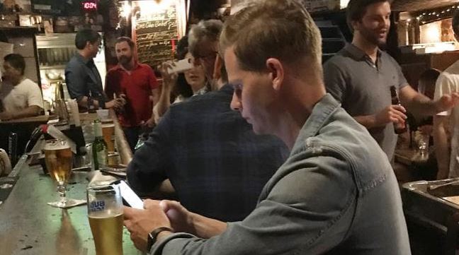 The disgraced Australian cricketer Steve Smith was seen having a beer in a shabby bar of New York, while his former teammates were being embarrassed by the English team in the ODI series. He was spotted in the Big Apple after doing some window shopping at real estate agents as he gets ready for a match of an altogether different caliber.