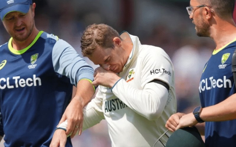 Positioned in the cordon, Steve Smith failed to react in time as the ball ricocheted off his hand, causing a visible injury to his finger. Wincing in discomfort, the seasoned campaigner immediately called for medical attention and left the field.