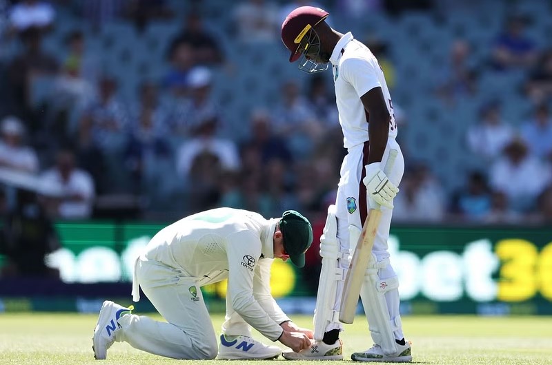 However, the highlight of the match wasn’t just the cricketing action but a heartwarming gesture from Australian vice-captain Steve Smith. During West Indies’ second innings, with the team struggling at 110-9, Smith noticed debutant Shamar Joseph’s untied shoelaces. In a spirit of sportsmanship, Smith took a moment to help tie Joseph’s laces while fielding at slips.