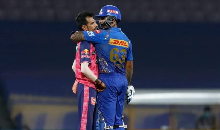 It is a rare scene on the cricket when a batter consoles an opposition bowler after a decision has been ruled against him by the DRS technology. Suryakumar Yadav shared such a moment with Yuzvendra Chahal in the game against RR as he was seen consoling the bowler after an LBW was ruled against him.
