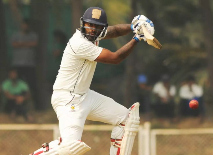Suryakumar Yadav missed out on a well-deserved century as he was caught in the bowling of off-spinner Yuvrajsinh Dodiya in Mumbai. SKY paced his knock with the help of 14 boundaries and a six after walking into bat when Mumbai was reeling at 5 for 2, having lost young guns Prithvi Shaw (4) and Yashashvi Jaiswal (2).