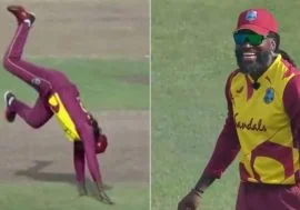 Despite fact that the flamboyant West Indian cricketer, Chris Gayle is 41 years old but that figure had no effect on his demeanor or movement on the field. The legendary batsman proved once again that age is just a number as he was seen doing a cartwheel, almost a summersault-like celebration after dismissing South Africa […]