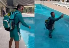 Alex Carey Fell Into The Swimming Pool After Entering The Team Hotel