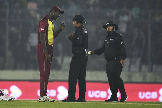 However, replays on the giant screen showed that Tanvir gave the wrong decision as Thomas had a significant part of his foot behind the popping crease. A furious Windies skipper Carlos Brathwaite then made his frustration clear as he asked for a review against the decision. With no other option looking viable at that moment, the on-field umpires decided to go upstairs before Tanvir changed his decision.