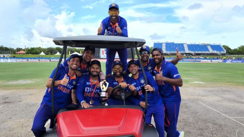India outplayed West Indies in a five-match T20I series by 4-1 as they defeated the hosts by 88 runs in the final game. Shreyas Iyer made a vital contribution with a half-century while spinners bowled very well to wrap up West Indies for a low total. Ravi Bishnoi was the pick of the bowlers as he scalped four wickets. The team scored a win convincingly but their celebration after the series win was noteworthy.