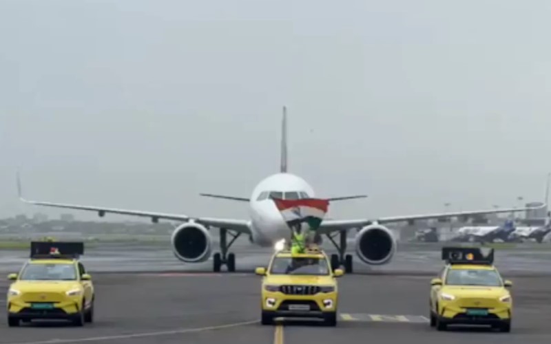 The aeroplane carrying the victorious Indian cricket team received a grand water cannon salute upon its arrival at Mumbai International Airport on Thursday, July 4, 2024. The team, fresh from their historic ICC T20 World Cup 2024 win, is set to embark on a celebratory victory parade from Marine Drive to Wankhede Stadium.