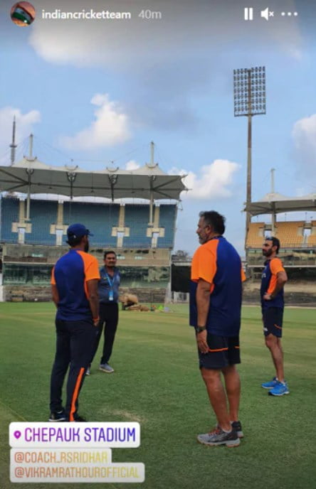 Team India witnessed their first outdoor training session after finishing reaching Chennai for the first couple of Test matches against England. The Indian players went through their quarantine and came out negative after all the Covid tests, and trained at the MA Chidambaram Stadium in Chennai. The team’s official Instagram handle shared pictures from the training session on their story.
