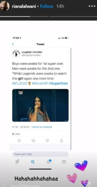 Interestingly, her bio also reads, “that super over girl.” She has also shared some of the hilarious memes on her in her Insta stories. This is not the first time that fangirls in the stadium have gone viral. Similar things have happened during the previous two editions as well when the spectators were allowed to watch the matches.