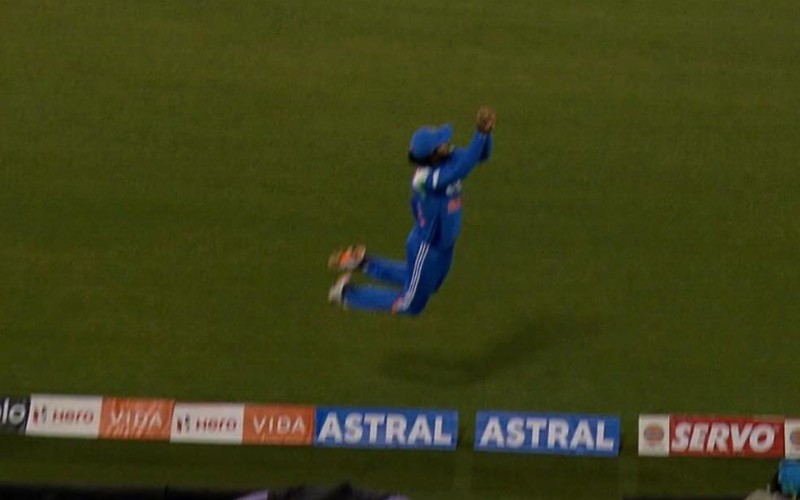 Realising that his momentum would carry him over the ropes, he showed outstanding presence of mind, flipping the ball back into play just before his foot touched the boundary cushion. The save denied South Africa a certain six and highlighted Tilak’s sharp awareness and commitment.