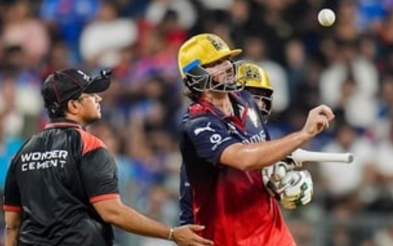 The incident first occurred in the 18th over of RCB’s innings when David smashed a six off Hardik Pandya. With the ball getting wet, the Mumbai Indians requested a replacement, a rule permitted under current IPL regulations. As per protocol, the umpires are responsible for selecting a similarly used ball from the available set.