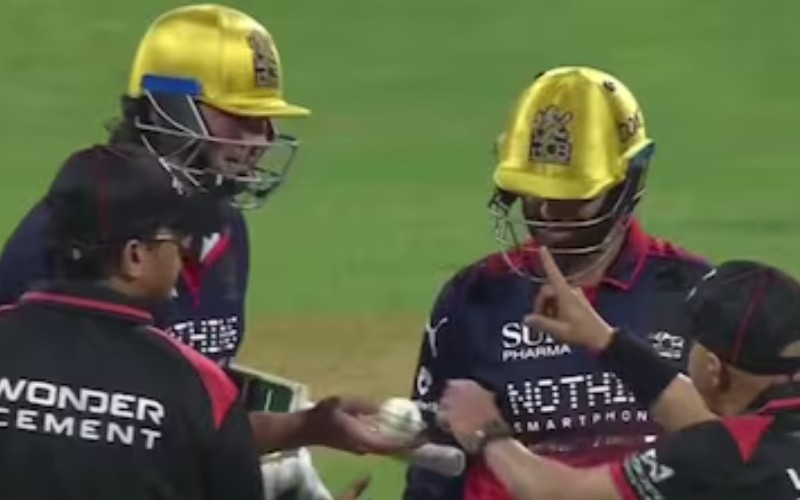 Former India cricketer Aakash Chopra pointed out on air that batters are not permitted to handle or assess the ball during a change, hinting that the act could fall under time-wasting provisions in the IPL Code of Conduct.
