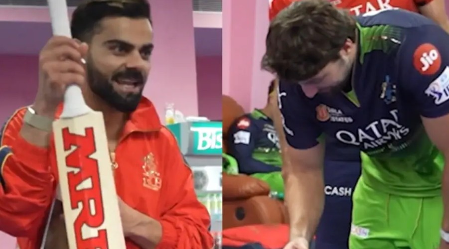 After Royal Challengers Bengaluru’s clash against Rajasthan Royals, the RCB dressing room witnessed a hilarious moment, courtesy of Aussie all-rounder Tim David. The prankster-in-chief decided to have some fun with none other than Virat Kohli by hiding one of his bats—a move that led to a burst of laughter among teammates and fans alike.