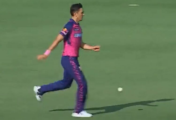 In the 32nd match of the Indian Premier League (IPL) 2023, the Royal Challengers Bangalore (RCB) is locking horns with the Rajasthan Royals (RR) on Sunday, April 23. Bowlers often don’t hesitate to express their emotions on a cricket field but some incidents instigate their emotions such that it leads to an exceptional reaction. RR pacer, Trent Boult showcased his anger against RCB by stomping at the ball angrily after the umpire halted him in his run-up.