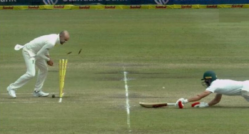AB de Villiers was run-out for a golden duck after some fine work from David Warner and Lyon. However, what followed immediately after he was run-out, is something that is described as an act of lack of sportsmanship and shameful by many users on Twitter. Lyon, after knocking over the stumps to run-out De Villiers, was caught dropping the ball on the batsman as he ran to celebrate with his teammates.