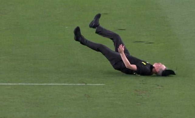 In fact, it happened that on the last ball of the last over of the Perth Scorchers’ innings, the batsman ran for two runs and the non-striker’s end was thrown from deep so fast that the umpire started running back to avoid that throw and during this time his The balance got upset.