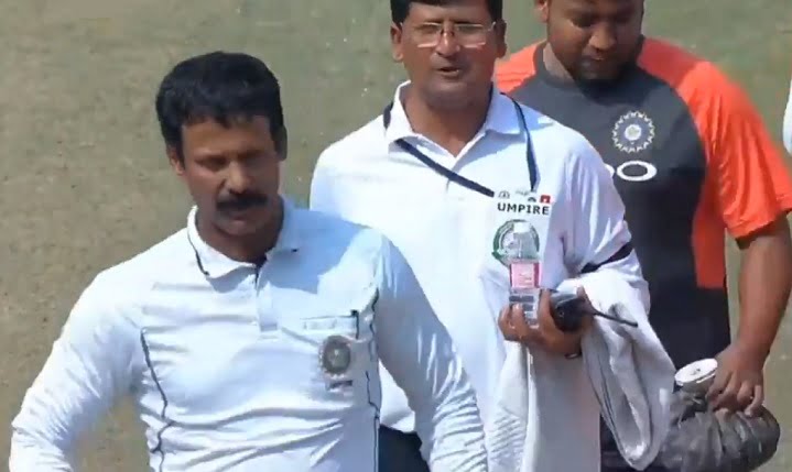 Seeing the incident, the leg umpire Nitin Menon suggested Nandan go off the field have some rest. But the latter gave a thumbs up, signaling he is ready to resume his duties, and continued umpiring till the end of the day.