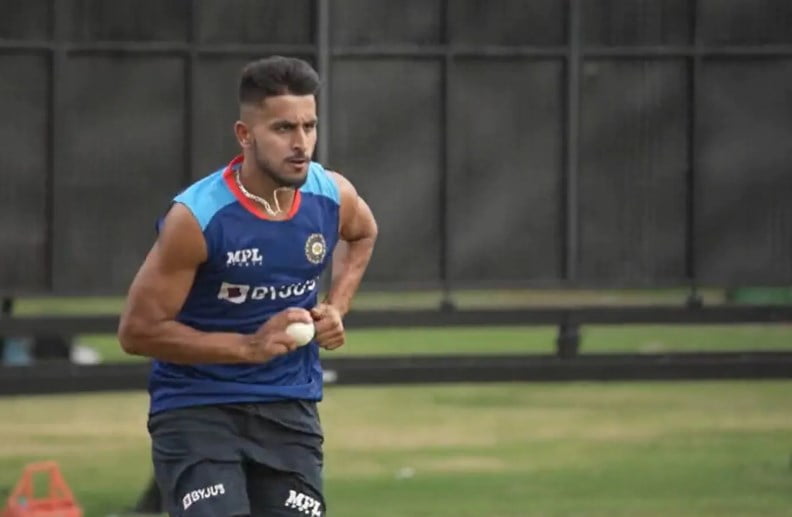 Umran Malik bowling in the Indian nets