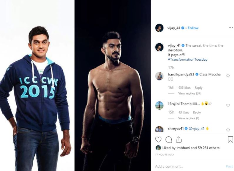 It pays off! #TransformationTuesday pic.twitter.com/oSyNWvMmVJ— Vijay Shankar (@vijayshankar260) October 15, 2019