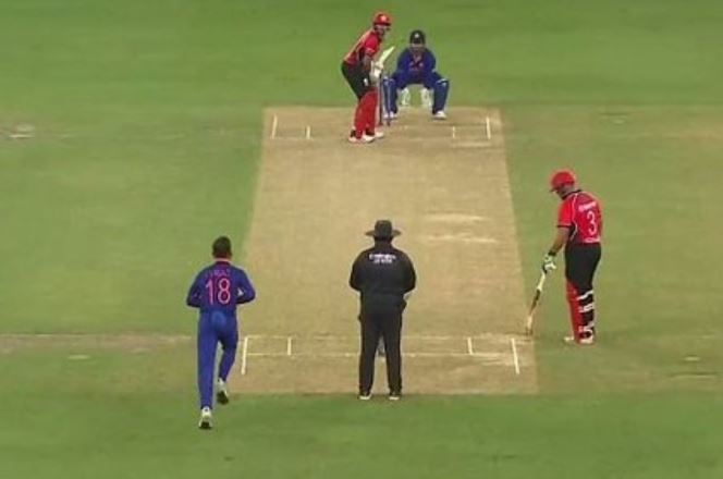Here is the video of Virat Kohli bowling against Hong Kong: