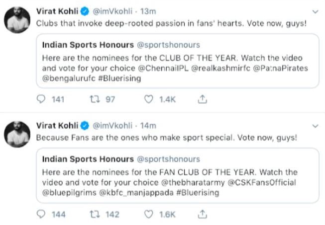 ALSO READ: Virat Kohli Urges Fans Case Vote In Indian Sports Honors