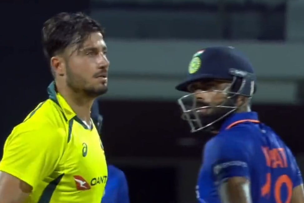 The 34-year-old batter did not seem to be amused with the incident, as his expression seemed to be warm. Stoinis, on the other hand, did not pay much attention to what happened and continued towards his bowling mark with a smile on his face.