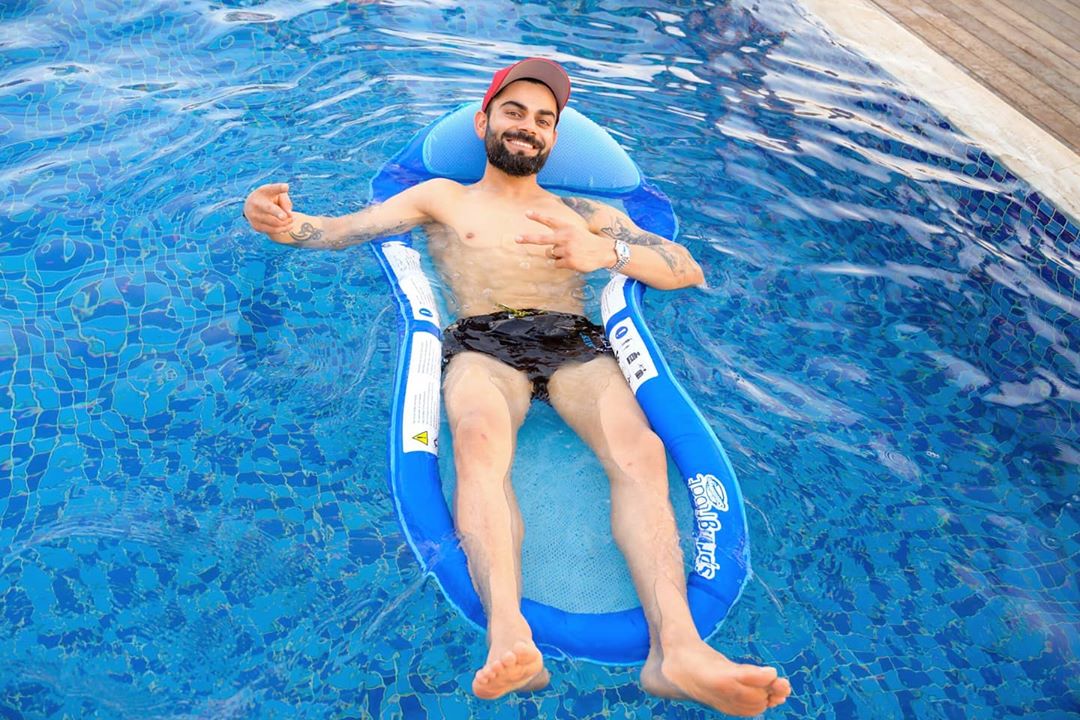 The Royal Challengers Bangalore (RCB) skiper, Virat Kohli had a “proper day at the pool” on Tuesday and he has let his fans know with a picture he posted on Instagram. In the picture, he can be seen relaxing on his back on a recliner as he cheerfully poses for the camera and gives out the victory sign.