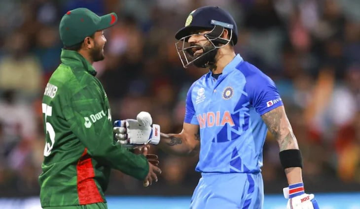 Bangladesh skipper, Shakib Al Hasan, and Virat Kohli got into a fun banter over a wide ball during the ongoing game between India and the Tigers in the Super 12 stage of the T20 World Cup. Hasan Mahmud was the man in question as he bowled a short-pitched delivery which was just high enough for umpire Marais Erasmus to signal a wide.