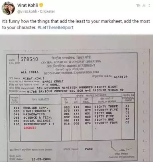 “It’s funny how the things that add the least to your marksheet, add the most to your character,” Kohli captioned his post on the social networking service. Former Indian skipper Kohli enjoys a massive fan following on social media. Thus, Kohli’s latest social media activity soon became the talk of the town on the internet.