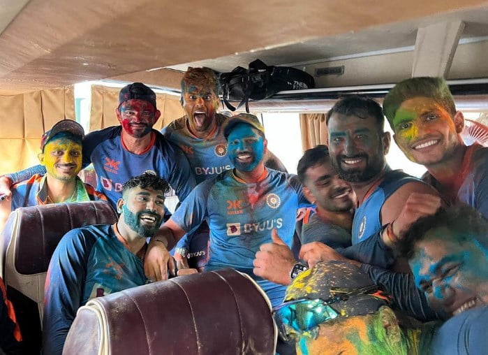 “Happy holi from @indiancricketteam,” Shubman Gill captioned his post on Instagram as the star batter extended Holi wishes to the fans and followers of the Indian team. With Gill giving fans a sneak peek into the Indian team’s Holi celebrations, the Instagram post has become the talk of the town on social media.