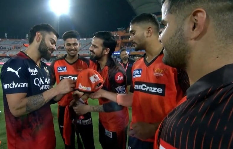 After smacking a cracking century against Sunrisers Hyderabad (SRH) on May 18, former Royal Challengers Bangalore (RCB) skipper Virat Kohli was spotted signing keepsakes for SRH’s players. The 34-year-old was seen signing a bat, SRH jersey, and cap as the official Instagram handle of the IPL shared it later on.