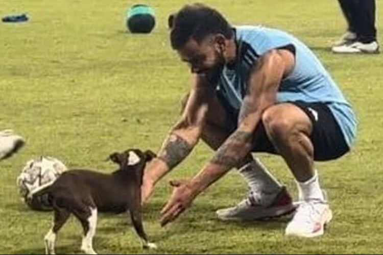 During the practice session, a tiny puppy unexpectedly entered the player circle and made a beeline for Kohli. The video shows Kohli interacting with the puppy and even playfully passing a football to the little canine before it left the ground. The caption accompanying the video aptly read, “Your morning dose of cuteness featuring the King.”