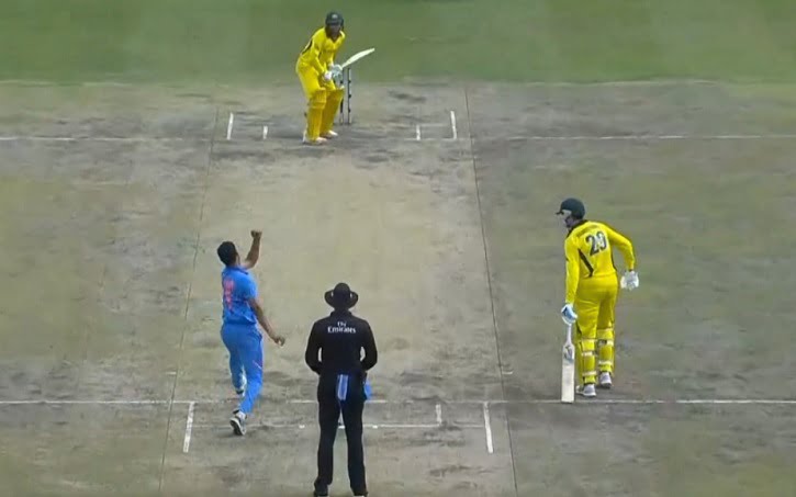 On the final ball of the penultimate over, Khawaja gave his wicket gift-wrapped at Kohli’s feet. Bhuvneshwar Kumar bowled a slower one outside off, tempting the drive on the up and Khawaja obliges, not taking the care he has done all innings to keep the ball down, or away from a fielder and the ball ended up going straight to the Indian captain at short cover. Khawaja got dismissed just after reaching to his 2nd ODI century.